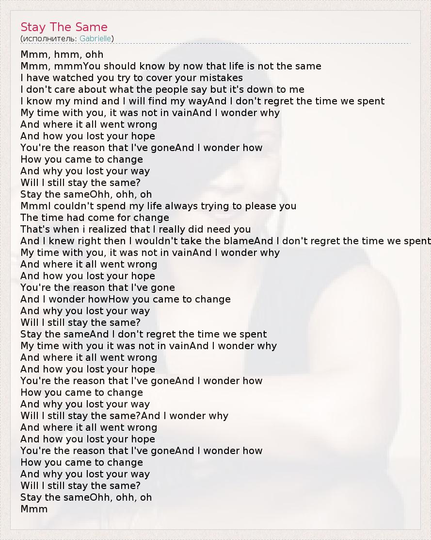 А как ты думаешь, о чем песня "Stay The Same" ?