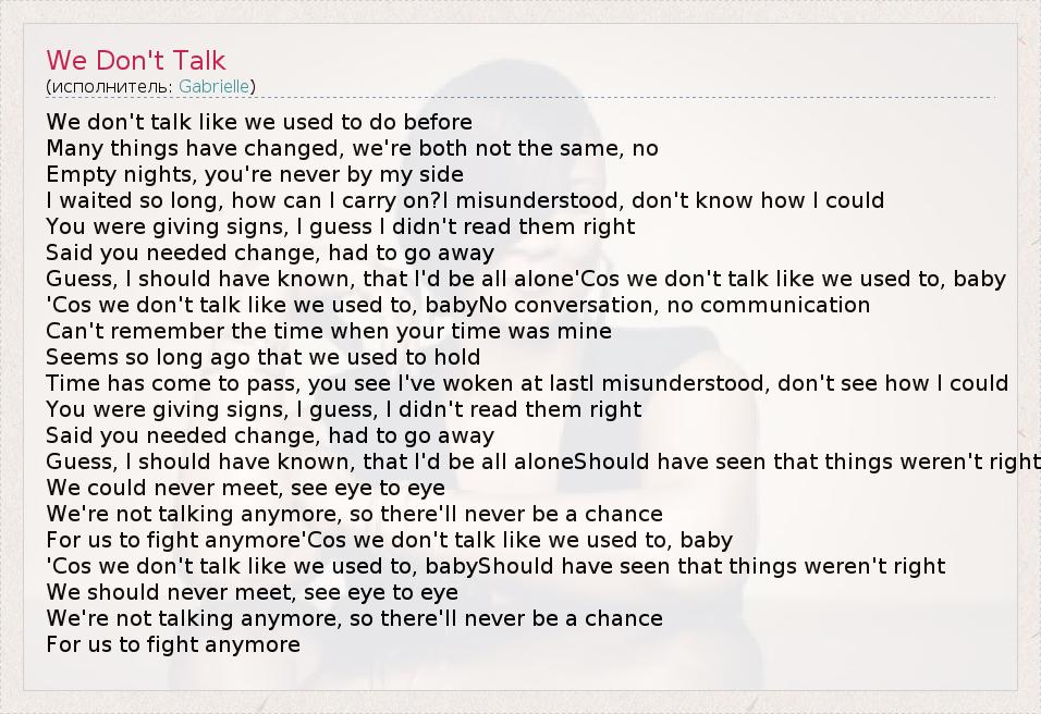 'Cos we don't talk like we used to, babyNo conversation, no communication