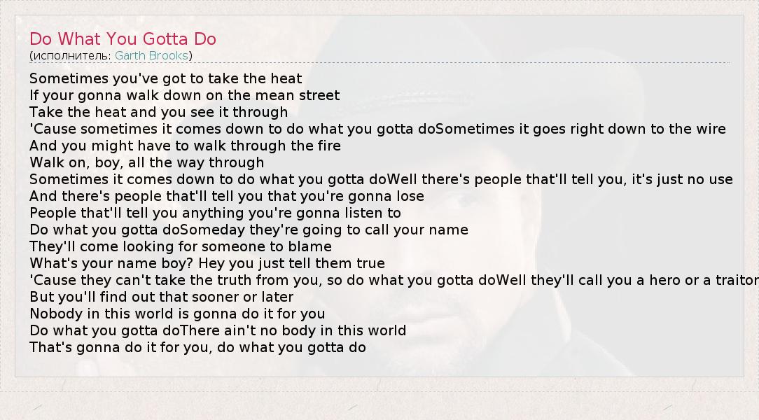 А как ты думаешь, о чем песня "Do What You Gotta Do" ?