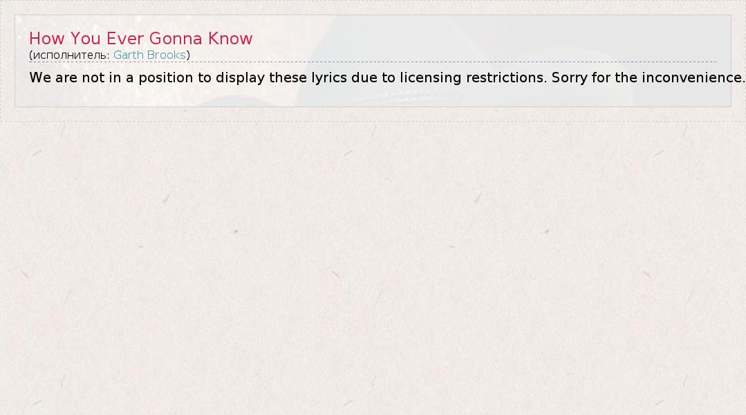 ГлавнаяИсполнителиGarth BrooksHow You Ever Gonna Know