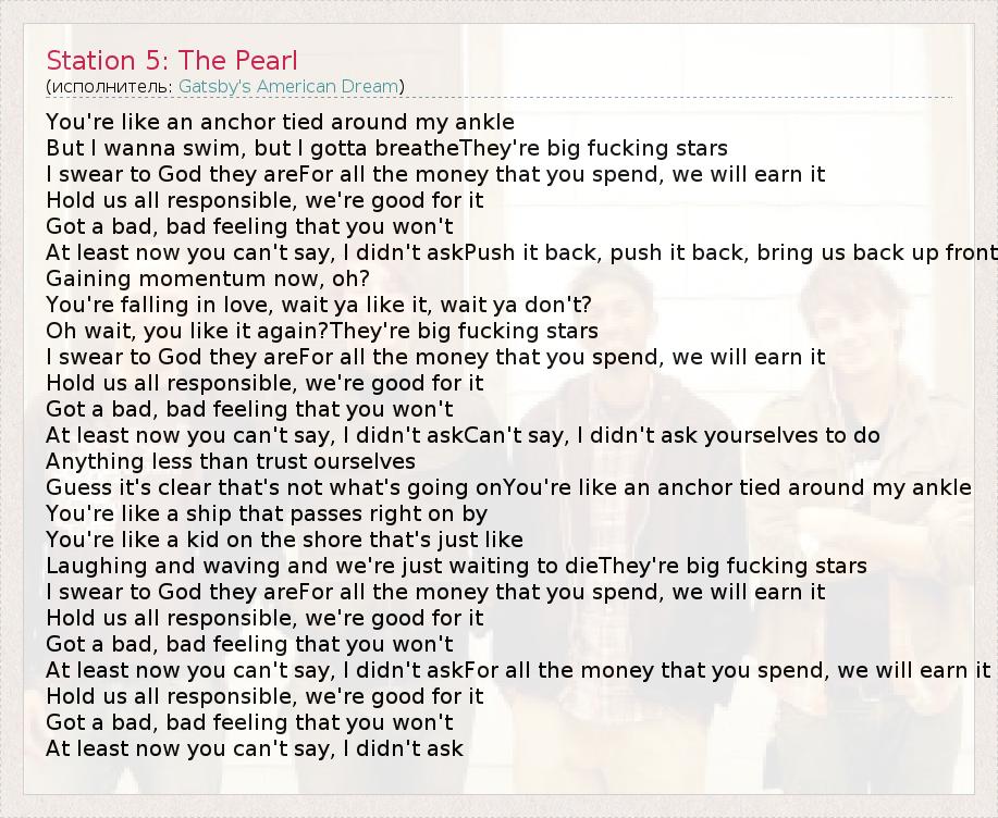 А как ты думаешь, о чем песня "Station 5: The Pearl" ?
