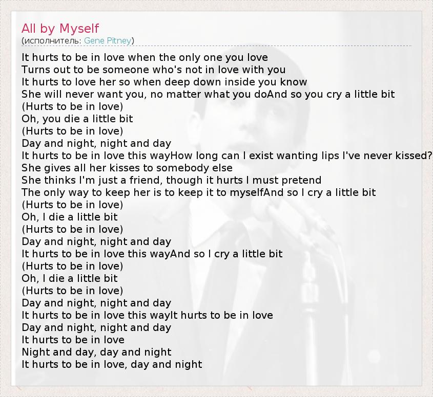 It hurts to be in love this wayHow long can I exist wanting lips I've never kissed?