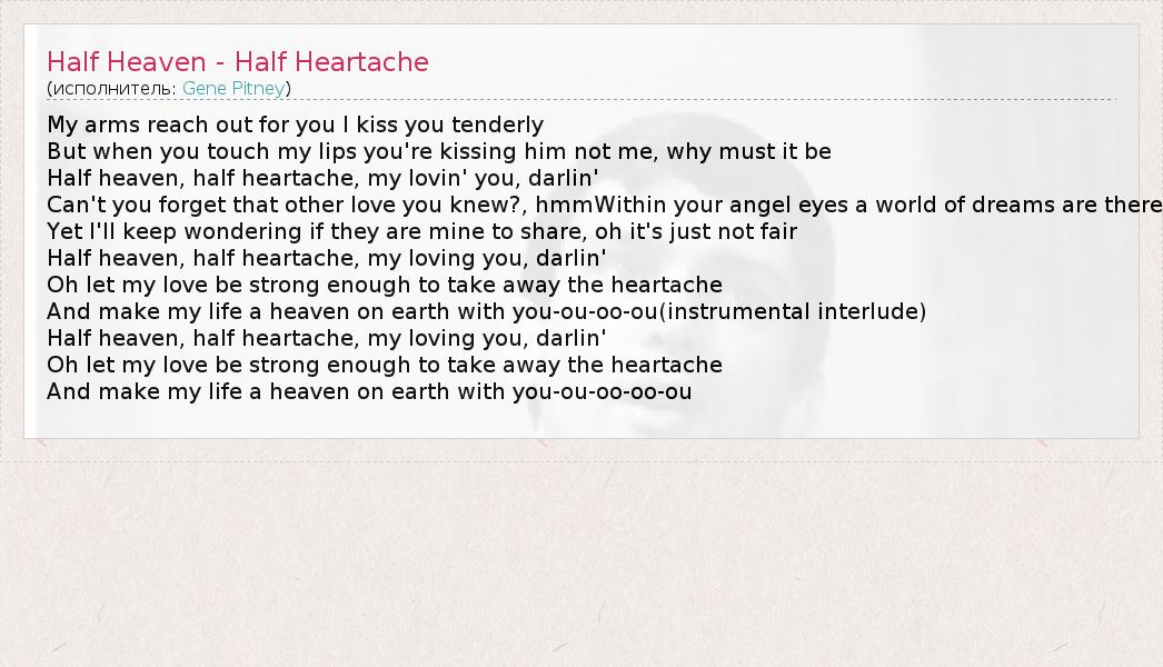 ГлавнаяИсполнителиGene PitneyHalf Heaven - Half Heartache