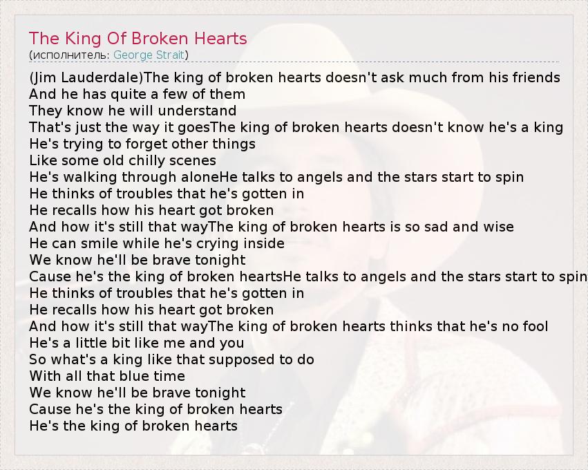 А как ты думаешь, о чем песня "The King Of Broken Hearts" ?