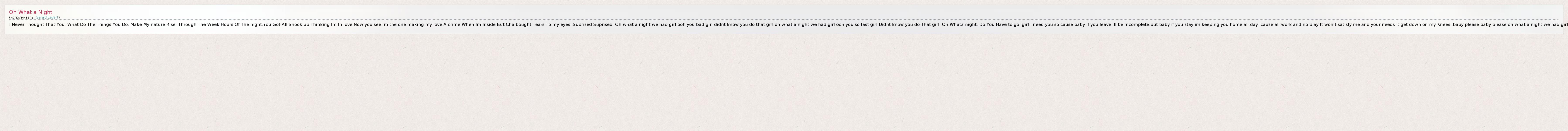 I Never Thought That You. What Do The Things You Do. Make My nature Rise. Through The Week Hours Of The night.You Got All Shook up.Thinking Im In love.Now you see im the one making my love A crime.When Im Inside But Cha bought Tears To my eyes. Suprised Suprised. Oh what a night we had girl ooh you bad girl didnt know you do that girl.oh what a night we had girl ooh you so fast girl Didnt know you do That girl. Oh Whata night. Do You Have to go .girl i need you so cause baby if you leave ill be incomplete.but baby if you stay im keeping you home all day .cause all work and no play It won't satisfy me and your needs it get down on my Knees .baby please baby please oh what a night we had girl