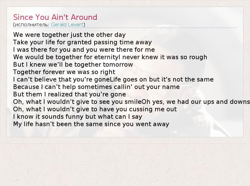 А как ты думаешь, о чем песня "Since You Ain't Around" ?