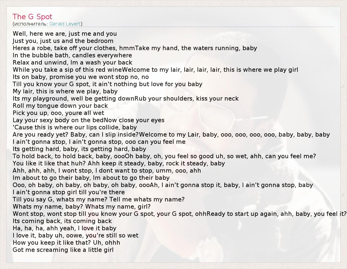 Wont stop, wont stop till you know your G spot, your G spot, ohhReady to start up again, ahh, baby, you feel it?