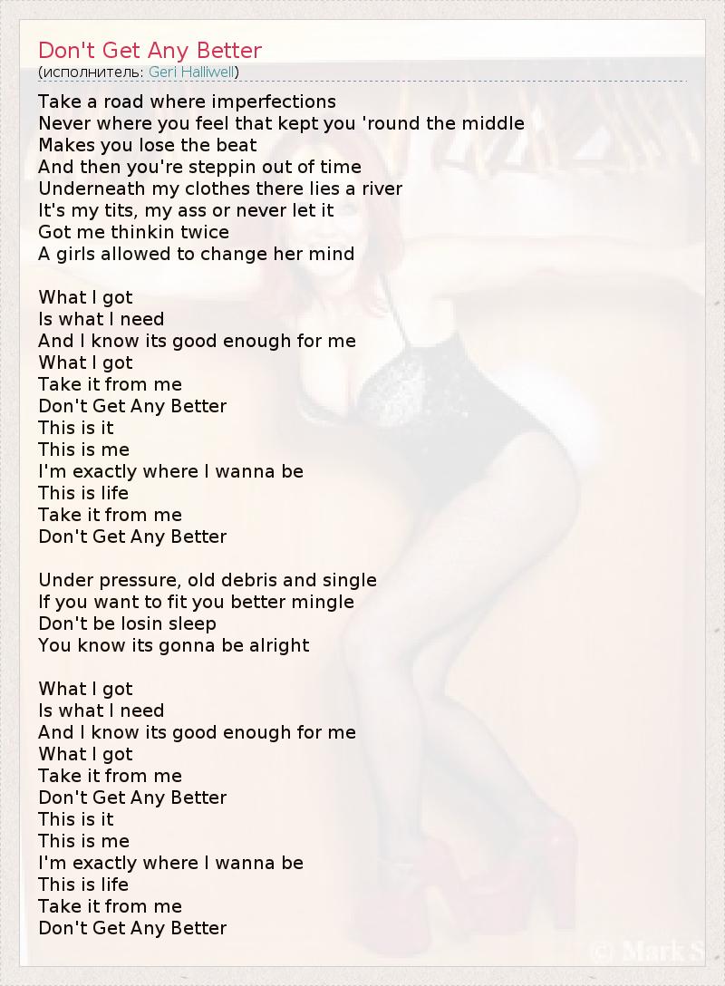 А как ты думаешь, о чем песня "Don't Get Any Better" ?