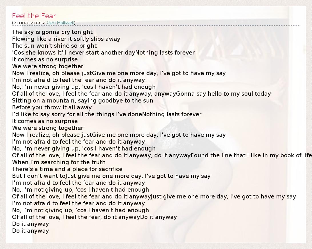 А как ты думаешь, о чем песня "Feel the Fear" ?