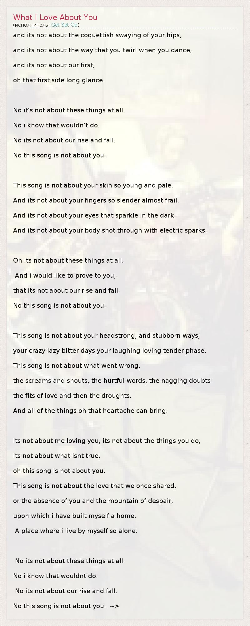 А как ты думаешь, о чем песня "What I Love About You" ?