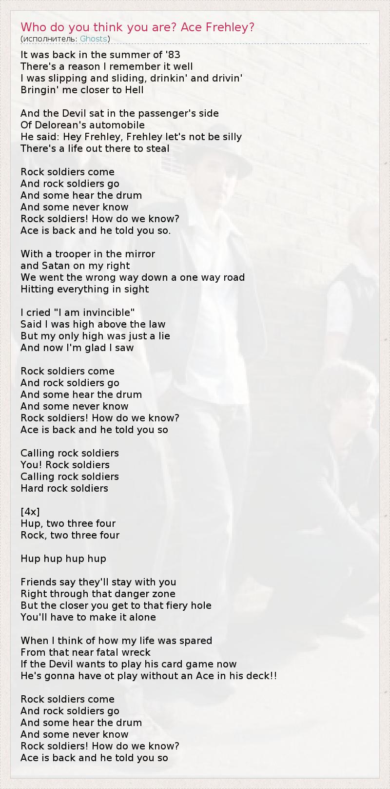 А как ты думаешь, о чем песня "Who do you think you are? Ace Frehley?" ?