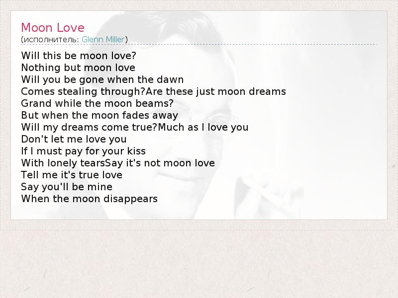 А как ты думаешь, о чем песня "Moon Love" ?