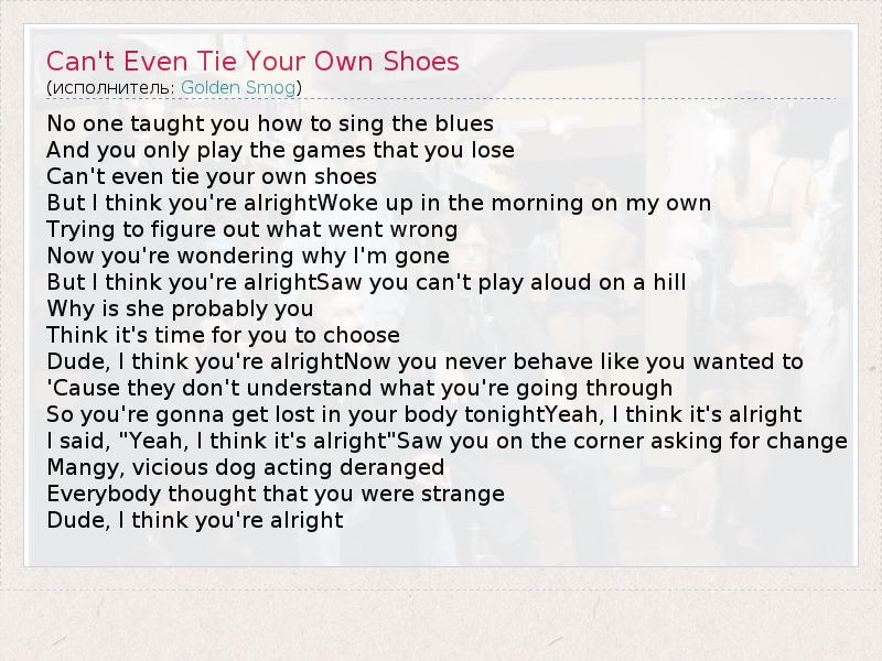 А как ты думаешь, о чем песня "Can't Even Tie Your Own Shoes" ?