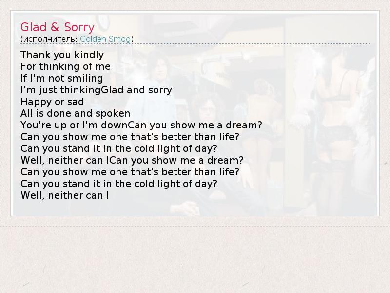 А как ты думаешь, о чем песня "Glad & Sorry" ?