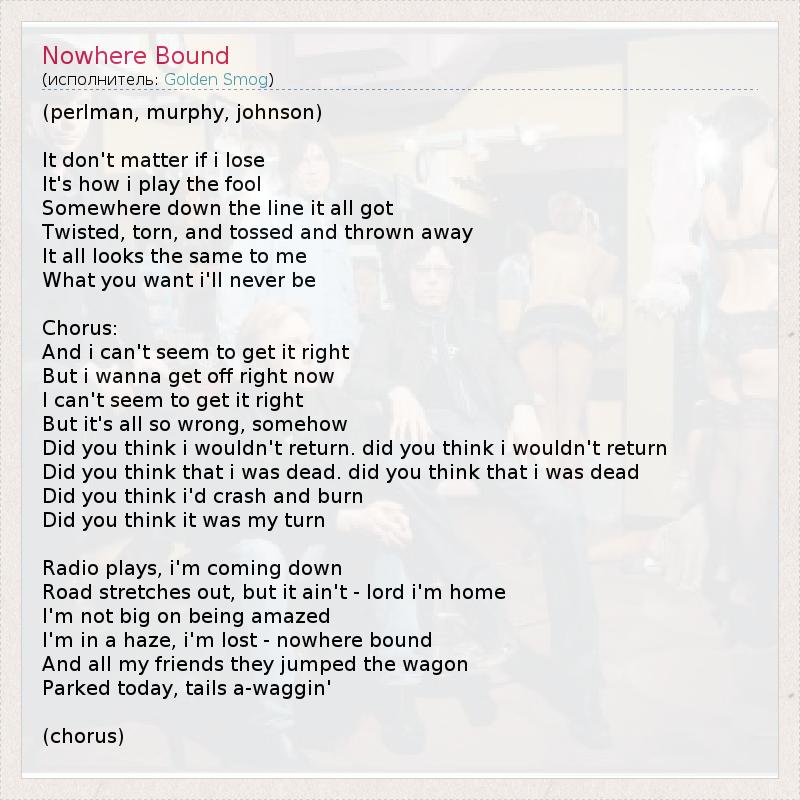 А как ты думаешь, о чем песня "Nowhere Bound" ?