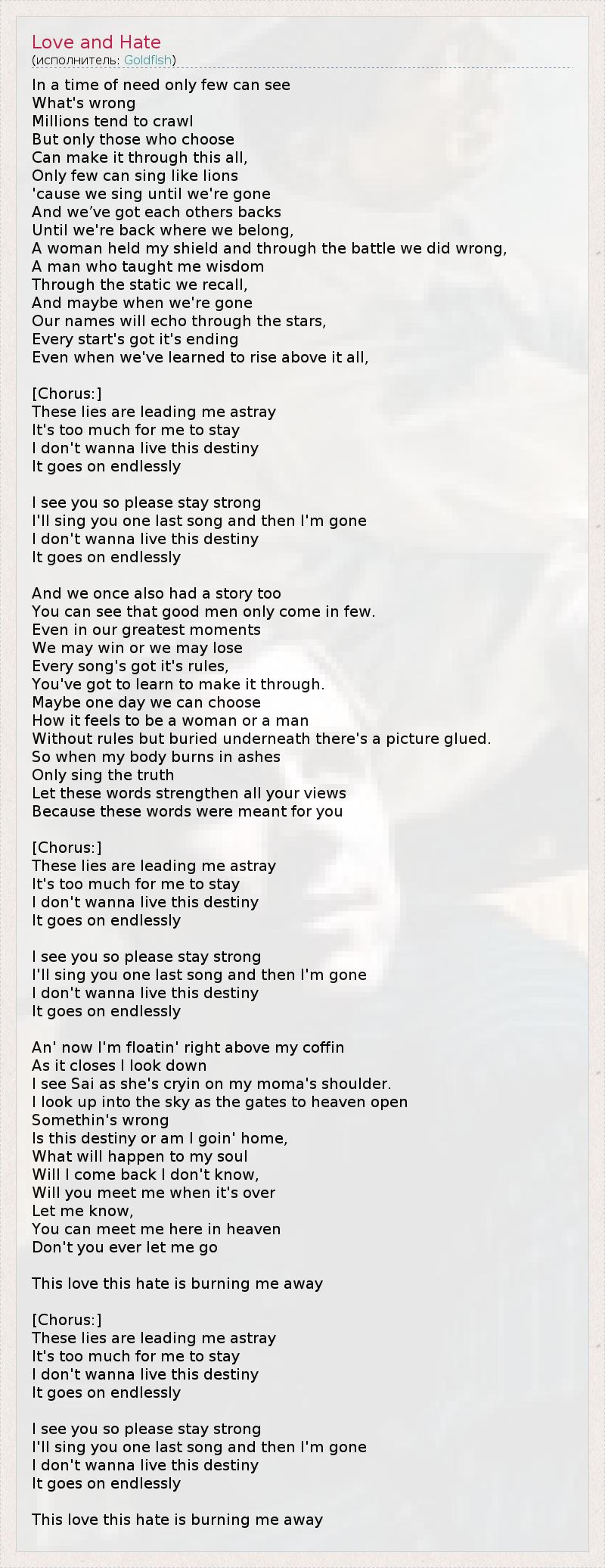 А как ты думаешь, о чем песня "Love and Hate" ?