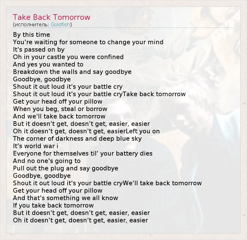 А как ты думаешь, о чем песня "Take Back Tomorrow" ?