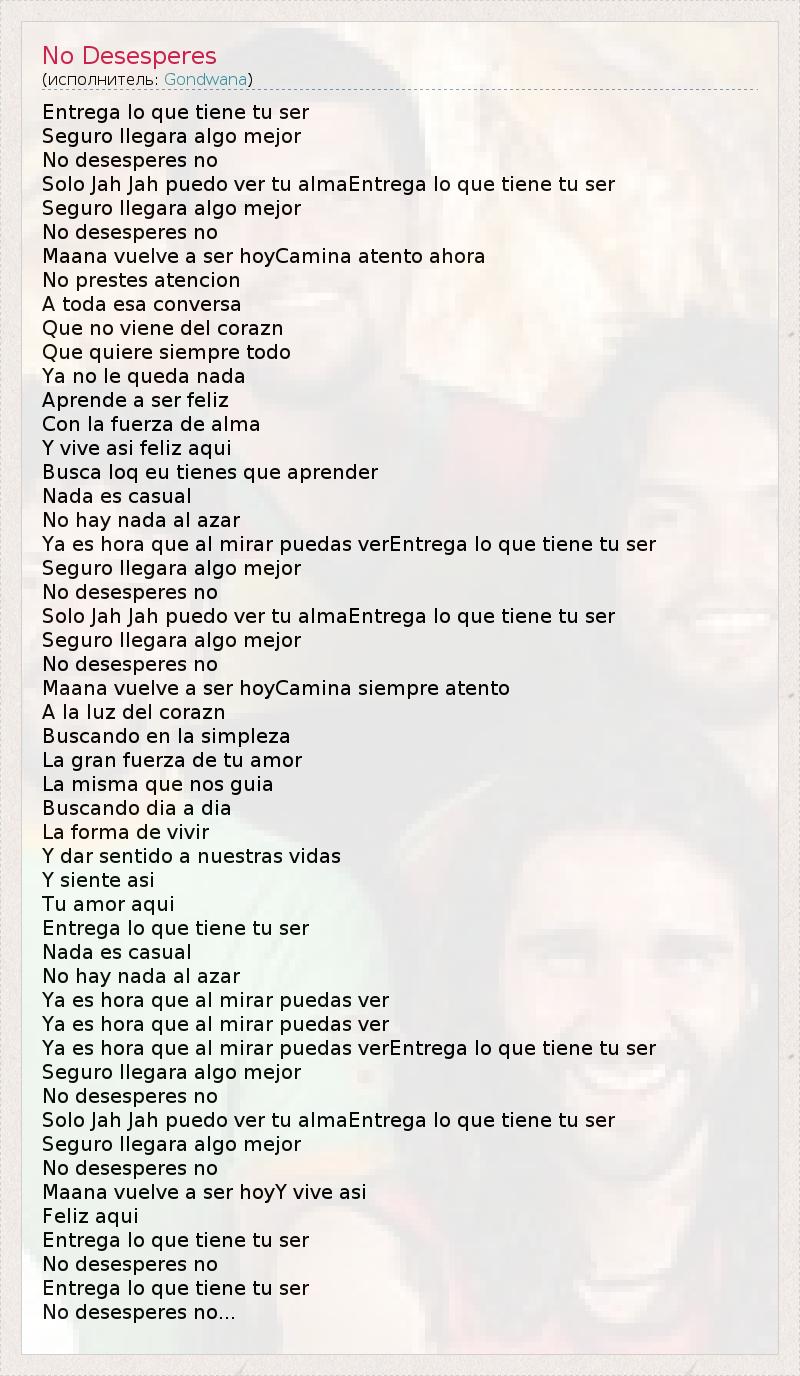 А как ты думаешь, о чем песня "No Desesperes" ?