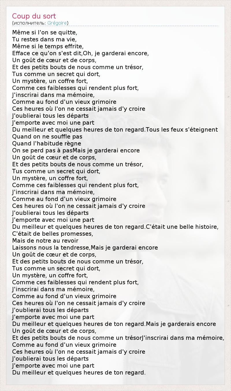 А как ты думаешь, о чем песня "Coup du sort" ?