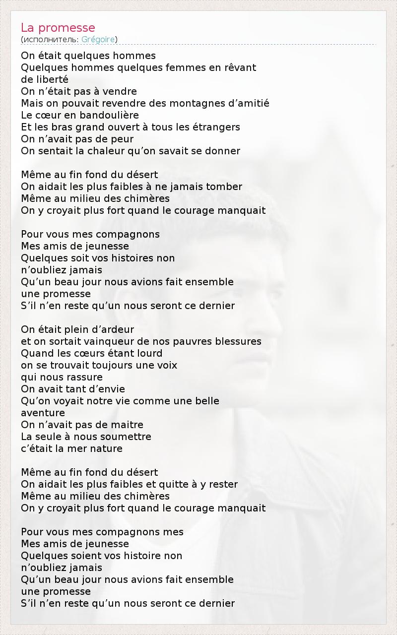 Это интересно:Grégoire стал первым музыкантом, чей альбом был выпущен на средства интернет-пользователей, собравший для реализации задуманного 70 тысяч евро. Сингл «Rue des Etoiles» оказался не менее успешным и активно ротируется на радиостанциях, а на концерты гастрольного тура, который стартует весной, проданы уже почти все билеты.