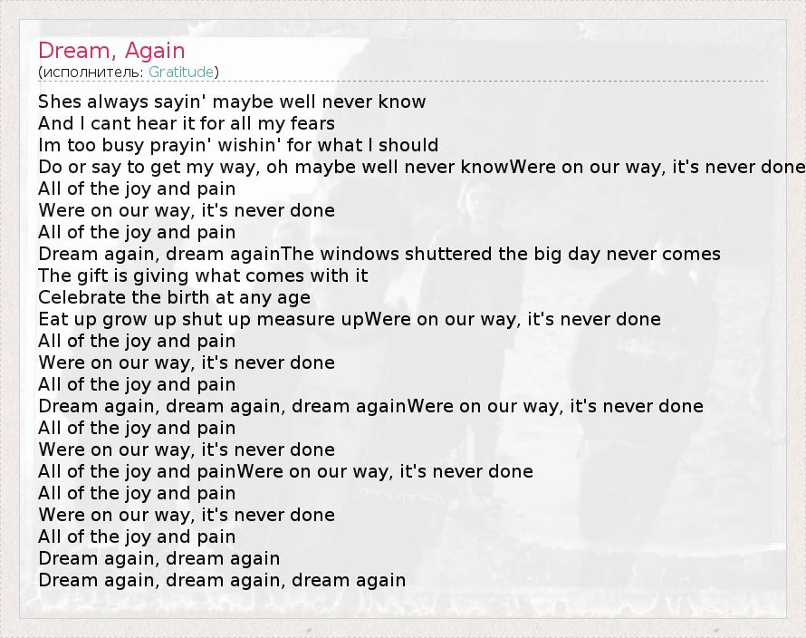 А как ты думаешь, о чем песня "Dream, Again" ?