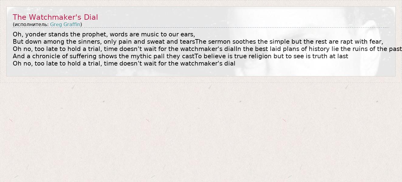 А как ты думаешь, о чем песня "The Watchmaker's Dial" ?