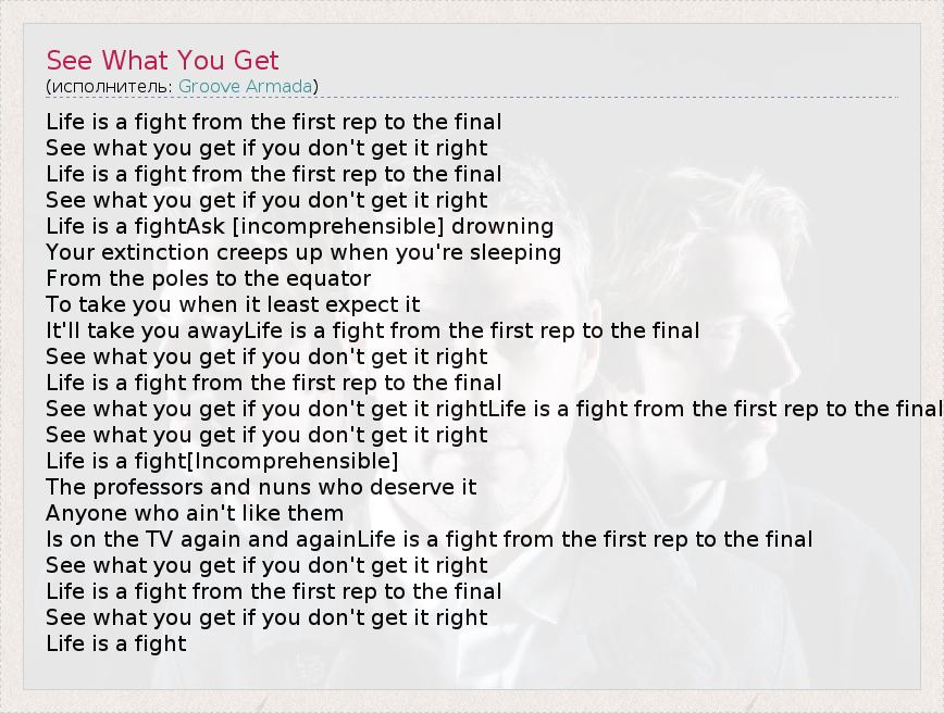Это интересно:Лондонский электронно-танцевальный дуэт Groove Armada был сформирован в середине 90-х ди-джеями и мультиинструменталистами Томом Финдли (Tom Findlay) и Энди Като (Andy Cato). Коллектив начал выступления в собственном клубе, названном так же, как и группа - Groove Armada (в честь одноименной дискотеки, функционировавшей в 70-е в Ньюкасле). В одной комнате Энди играл хаус, в другой Том заводил фанк. Затем они съехались... продолжение