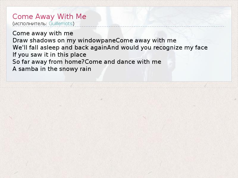 А как ты думаешь, о чем песня "Come Away With Me" ?