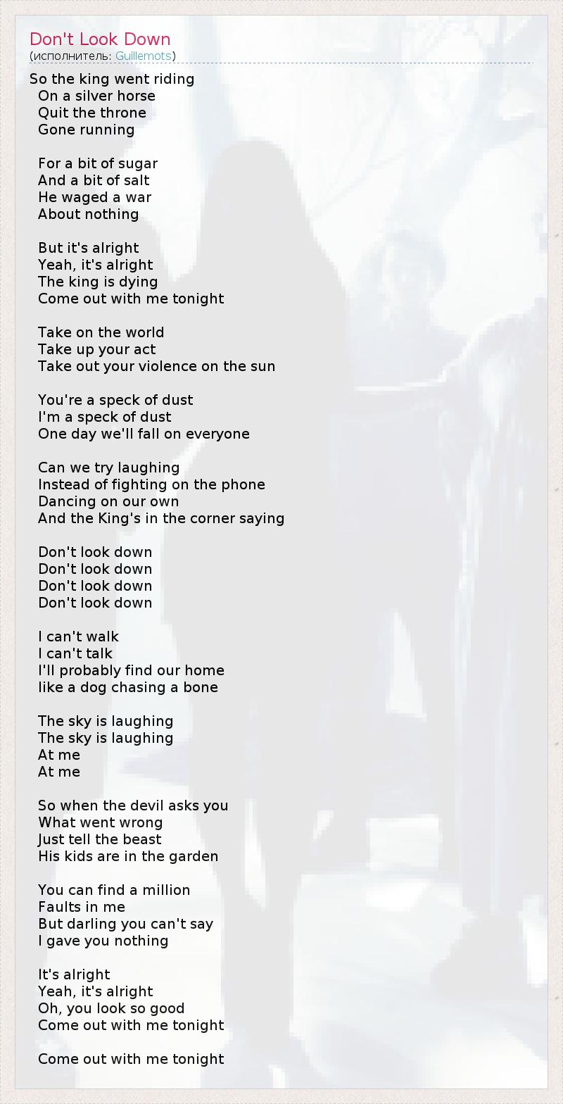 А как ты думаешь, о чем песня "Don't Look Down" ?