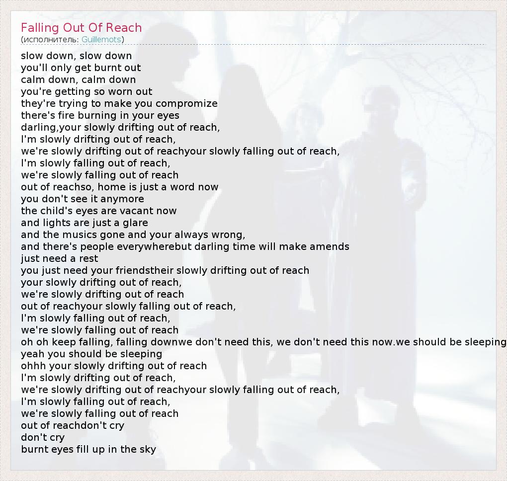 А как ты думаешь, о чем песня "Falling Out Of Reach" ?