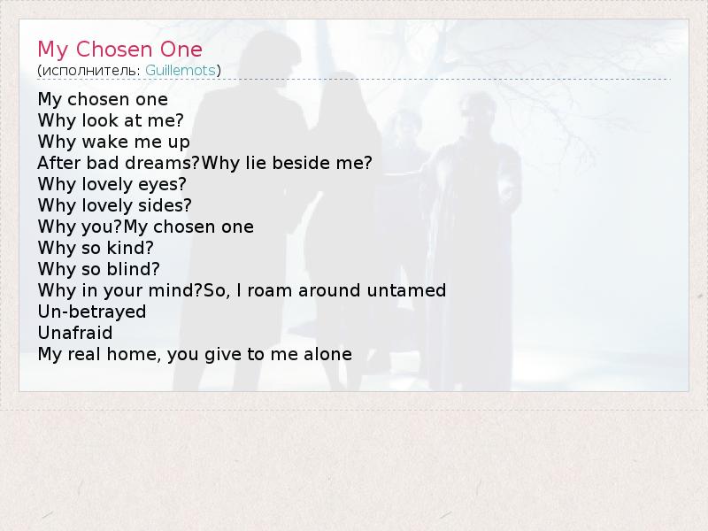 А как ты думаешь, о чем песня "My Chosen One" ?