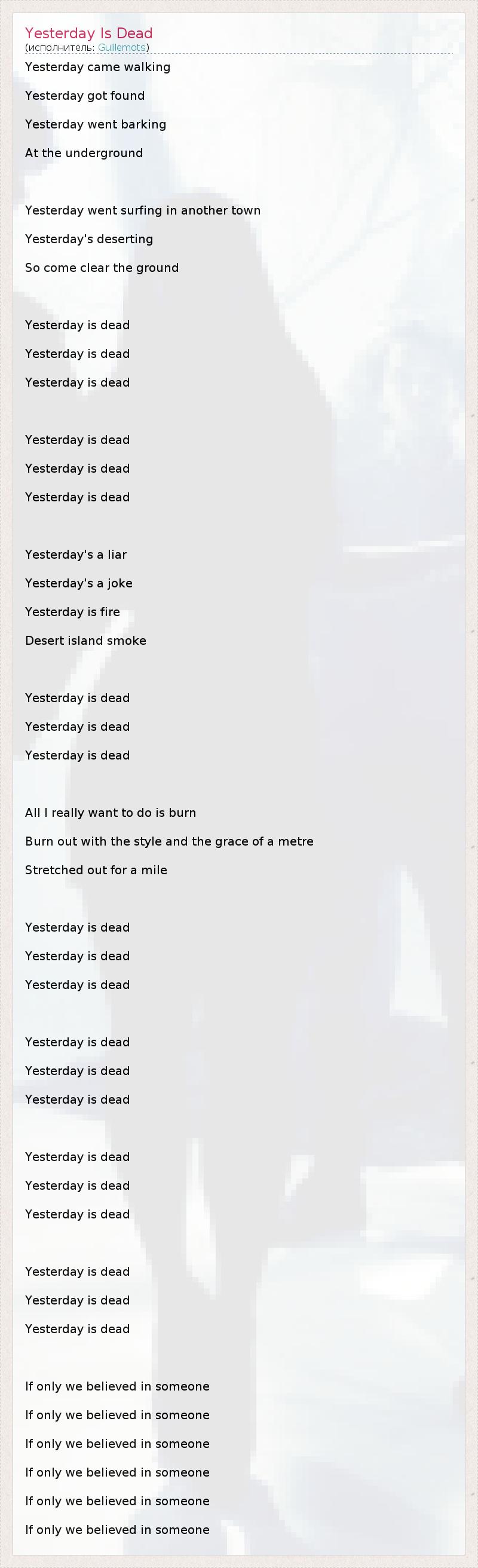 А как ты думаешь, о чем песня "Yesterday Is Dead" ?