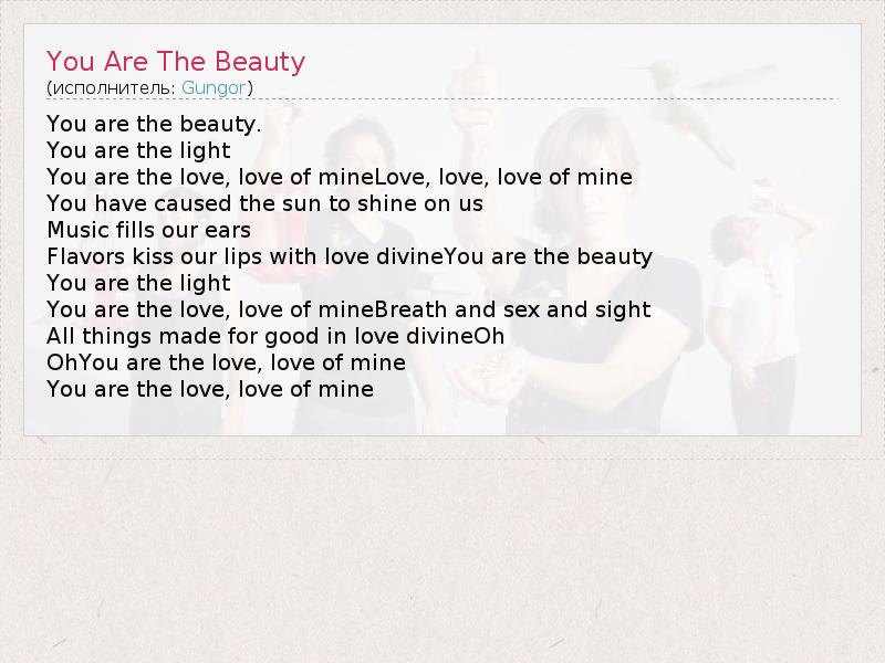 А как ты думаешь, о чем песня "You Are The Beauty" ?