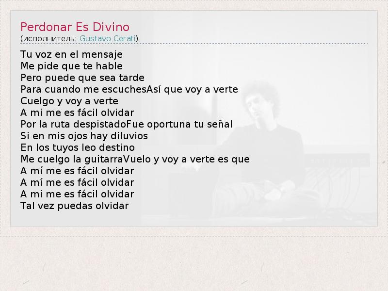 А как ты думаешь, о чем песня "Perdonar Es Divino" ?