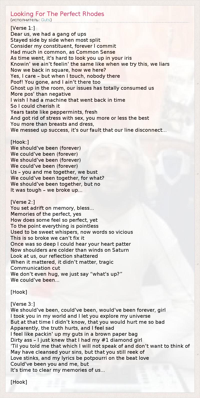 ГлавнаяИсполнителиGutsLooking For The Perfect Rhodes