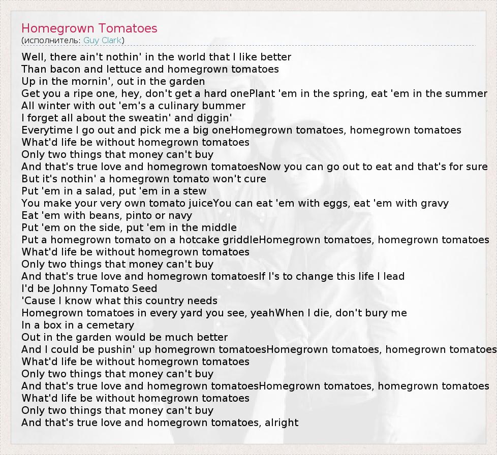 А как ты думаешь, о чем песня "Homegrown Tomatoes" ?