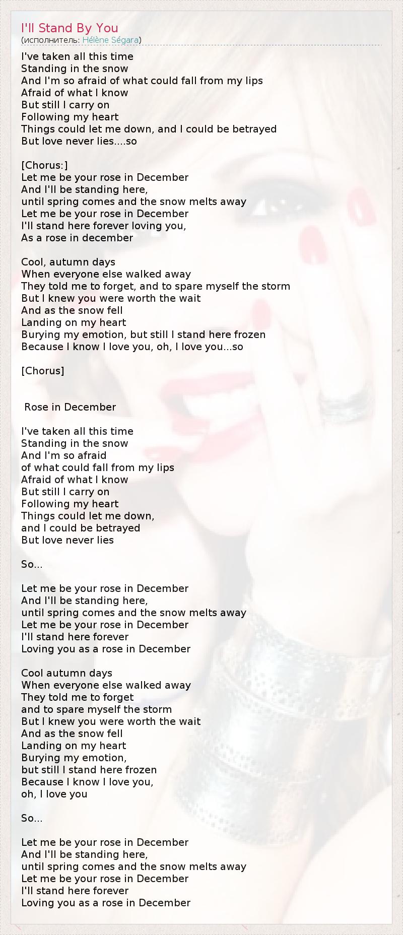 А как ты думаешь, о чем песня "I'll Stand By You" ?