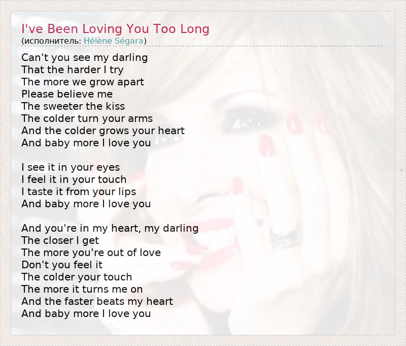 А как ты думаешь, о чем песня "I've Been Loving You Too Long" ?