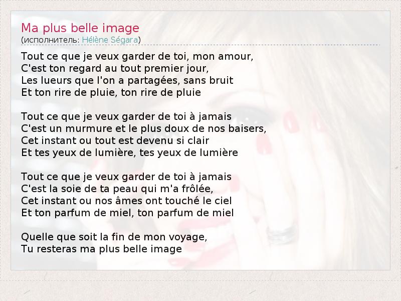 А как ты думаешь, о чем песня "Ma plus belle image" ?