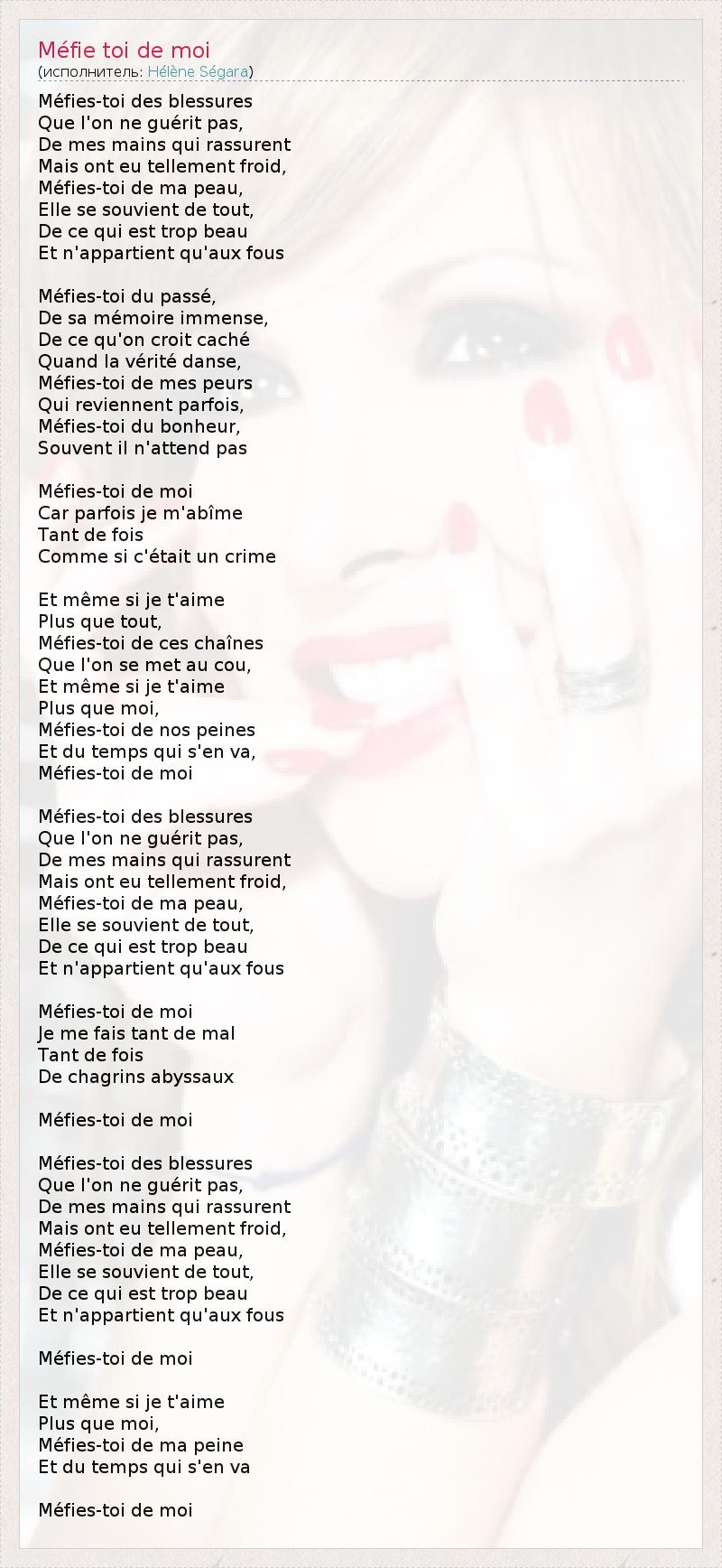 А как ты думаешь, о чем песня "Méfie toi de moi" ?
