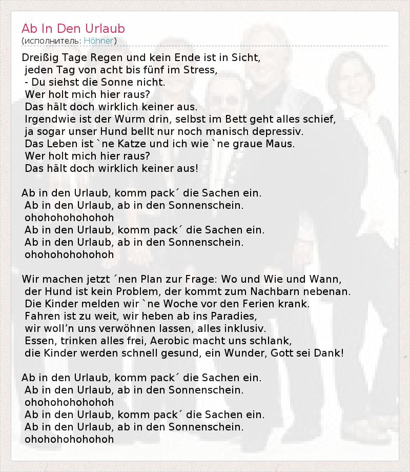 А как ты думаешь, о чем песня "Ab In Den Urlaub" ?
