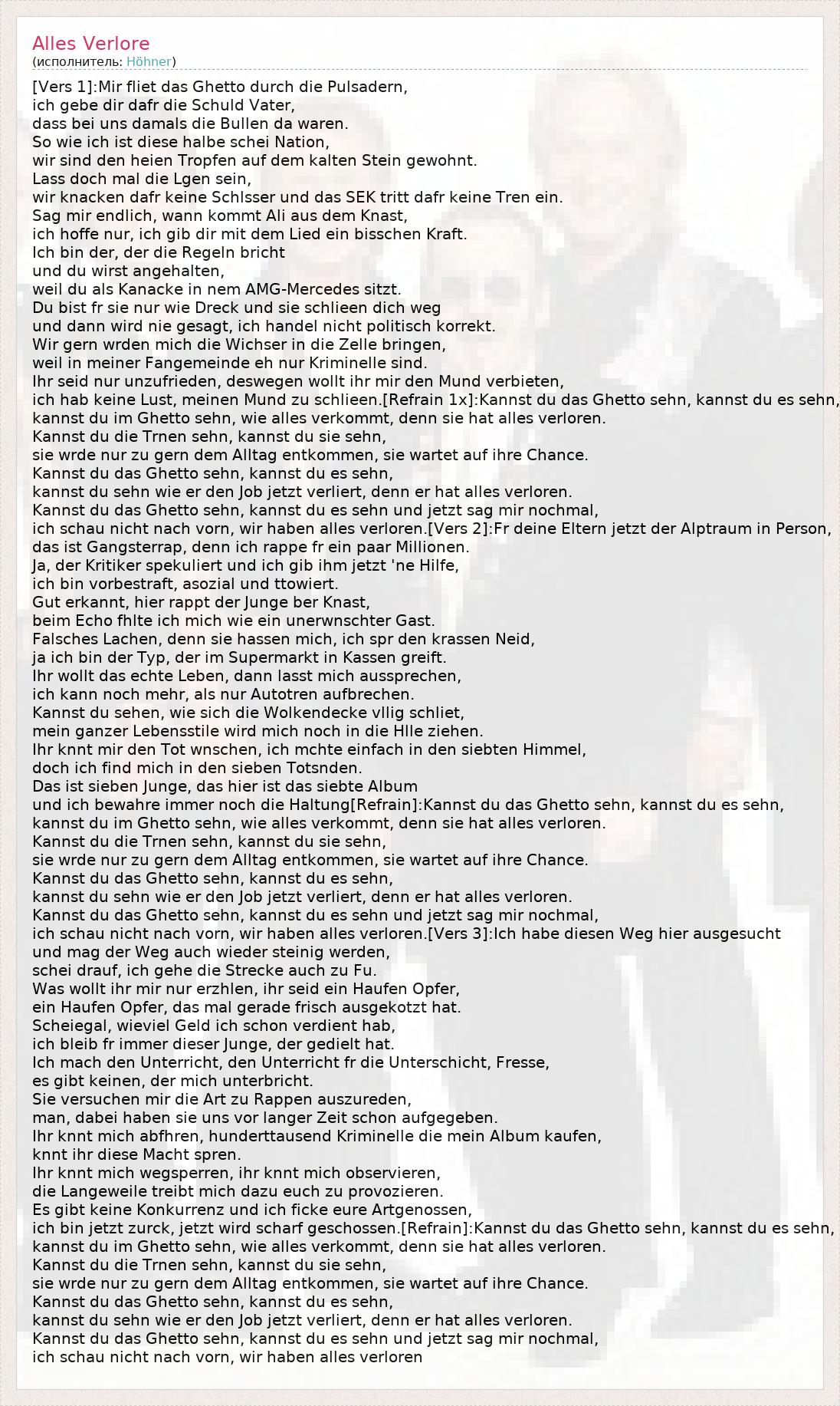 kannst du im Ghetto sehn, wie alles verkommt, denn sie hat alles verloren.