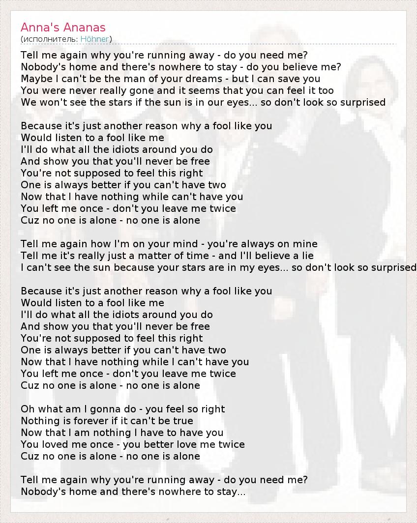 Cuz no one is alone - no one is alone