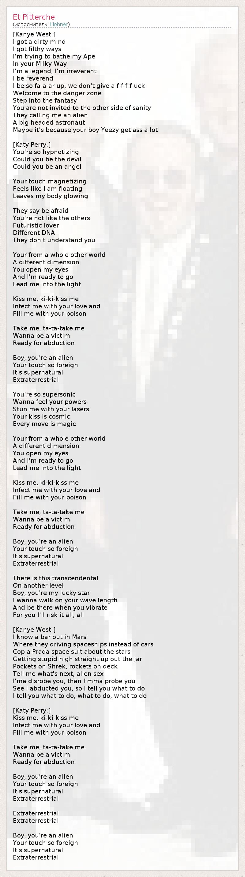 А как ты думаешь, о чем песня "Et Pitterche" ?