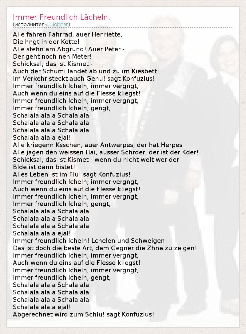 А как ты думаешь, о чем песня "Immer Freundlich Lächeln." ?
