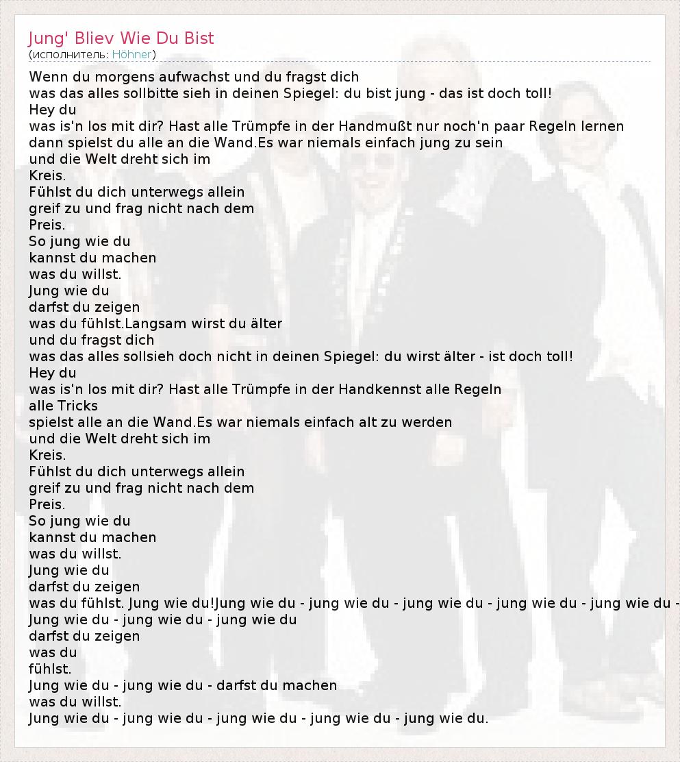 ГлавнаяИсполнителиHöhnerJung' Bliev Wie Du Bist