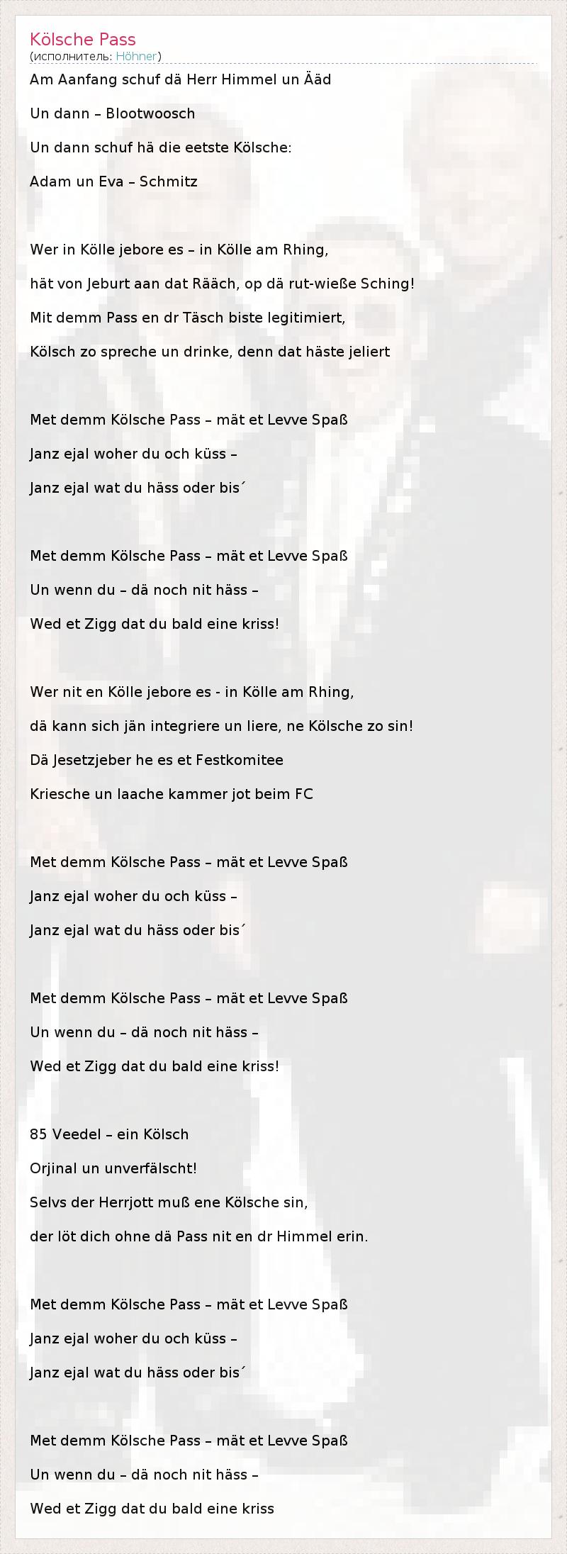 А как ты думаешь, о чем песня "Kölsche Pass" ?