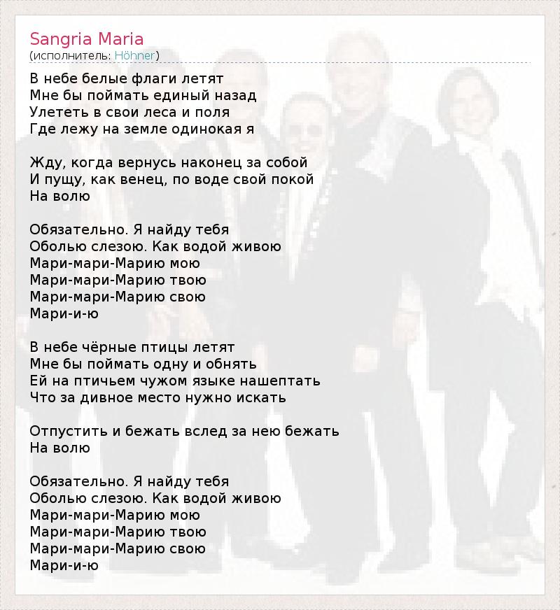 А как ты думаешь, о чем песня "Sangria Maria" ?