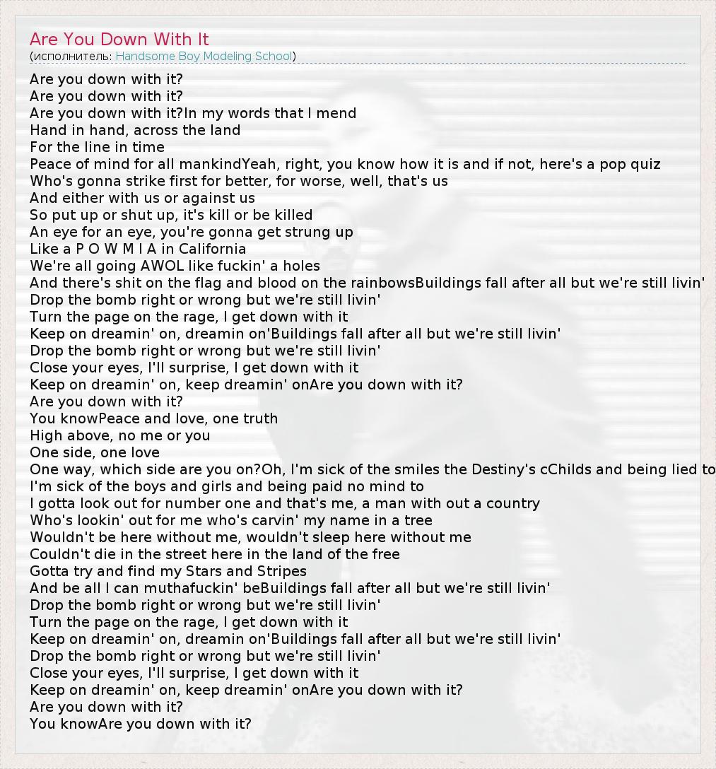 А как ты думаешь, о чем песня "Are You Down With It" ?