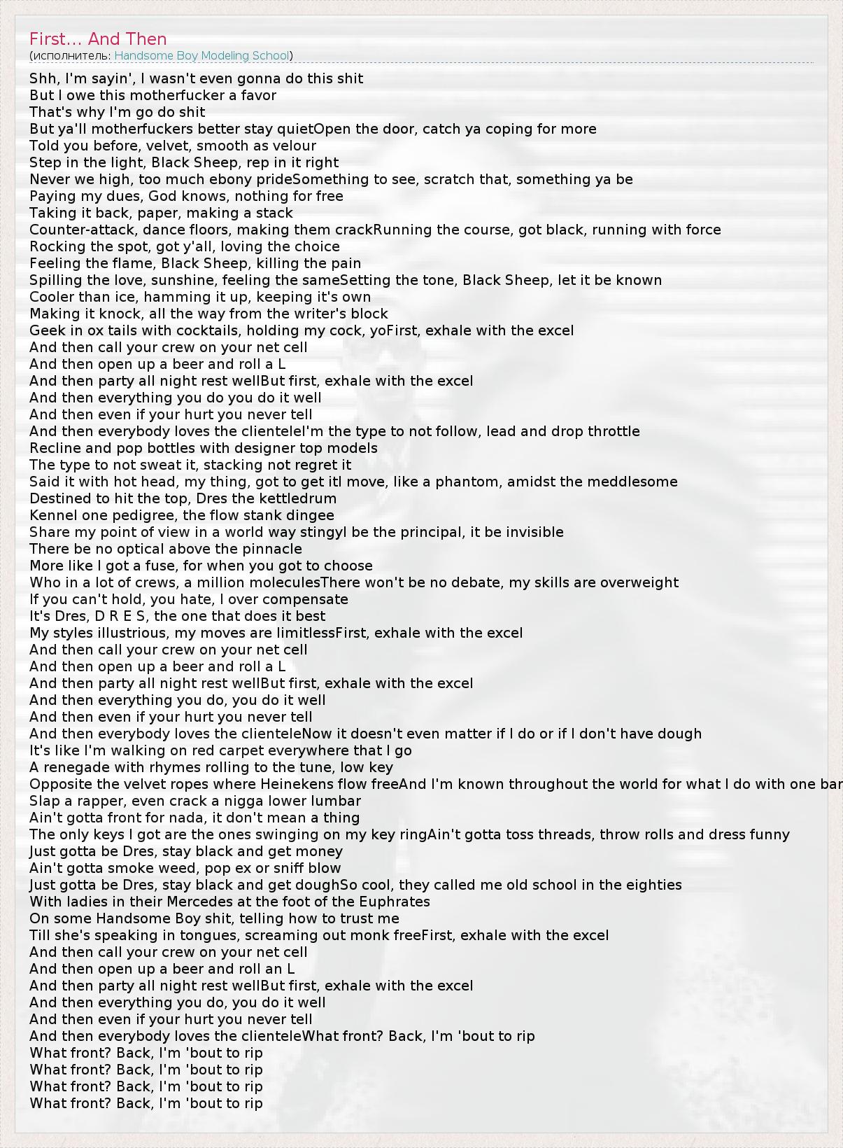 Till she's speaking in tongues, screaming out monk freeFirst, exhale with the excel